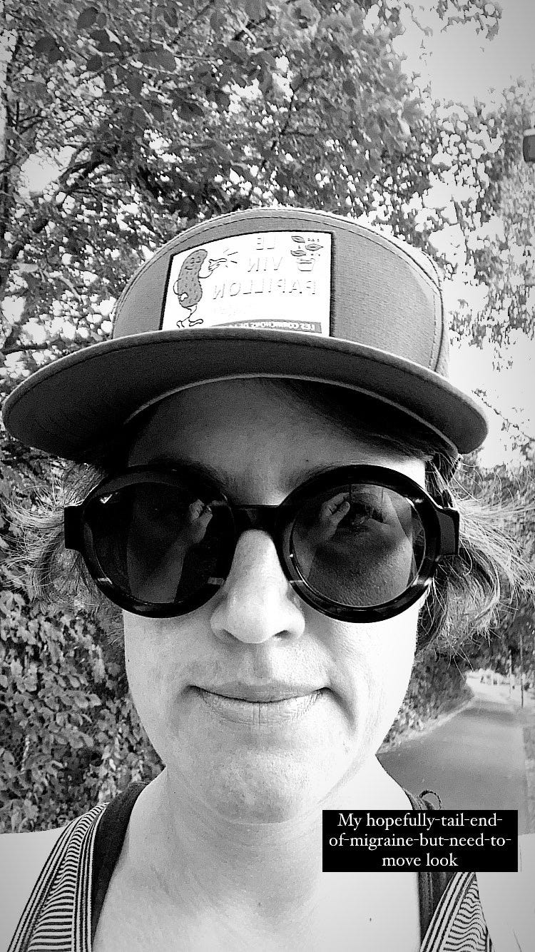 If you know someone who has migraines—or if you know me—you may struggle to understand what it’s like, or you may wonder what to do, or if you can help. One thing I don’t love is the innocuous and well-intended wish for a speedy recovery. The migraine takes the time it takes, there is nothing I can do to speed it up, it will be a full day, or sometimes even three. Time feels endless when I have a migraine. So I would love to hear something like “hang in there”, “courage”, or even “I hope tomorrow will be better” instead. And perhaps try to help me not feel bad about cancelling. I’ll have to cancel things, there is no way around it. I hate doing it, but I have to. Ask me if it’s really a good idea to go ahead anyway, if I try to, because it isn’t. If I actually have a migraine, the extent of socializing I can handle is a little walk with not too much talking, or maybe a visit for 15 minutes with takeout.
