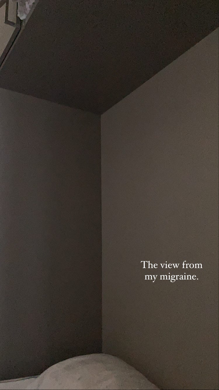On top of all of this, none of the usual migraine advice resonates. I sleep enough. There is zero correlation between my wine intake and my migraines (thankfully, on the one hand, but on the other hand that would have been an actual implementable fix!!). Sounds, noises, certain foods, not sleeping, barometric pressure—I have not identified a single thing that seems to correlate. The only so-called trigger I have ever been able to pinpoint is “stress”. What am I supposed to do about that? Beyond yoga, breathing exercises, already being a master planner, and not being a perfectionist? (I insist I am not, though people might disagree). And without auras to warn me, and migraines that most often begin when I sleep, there is no way to even try to medicate on time. You’ll sense my frustration.